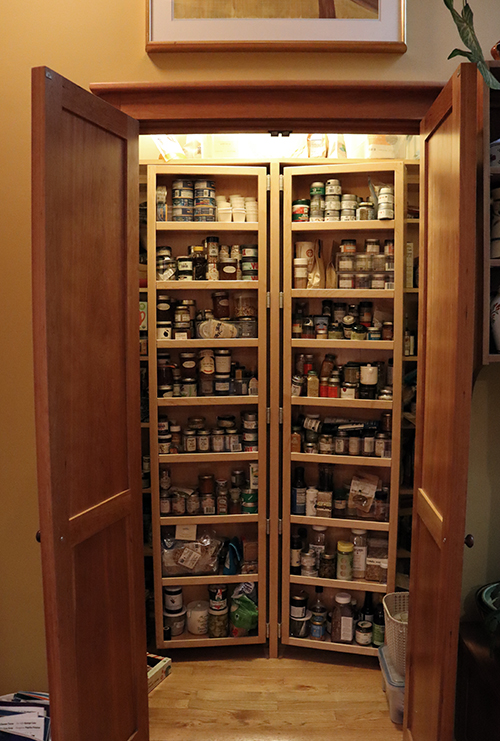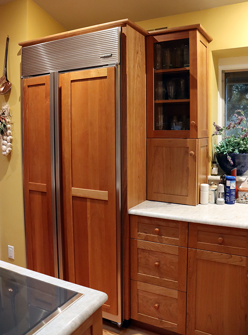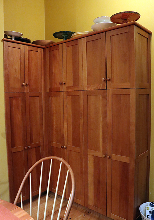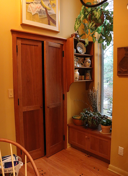 Custom cherry pantry doors and another small storage cabinet