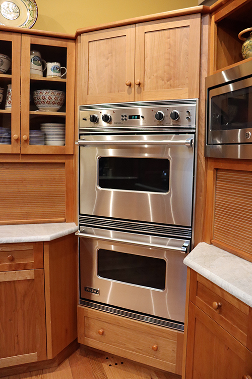 Corner double oven flanked by two appliance garages
